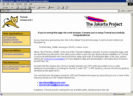 Open a browser and write the directory path in the Address field (e.g. http://localhost:8080) or the port number you configured. If you have configured for port 80 is is enough with http://localhost. Of you are SSL you should instead try with https://localhost:8443 or https://localhost. The result should be as below: