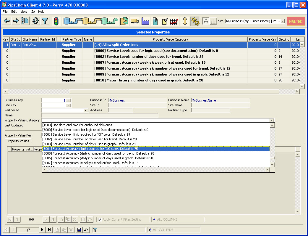 select the Property Value Category (listed above)